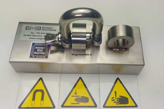 Każda belka z magnesami zawiera szeklę z uchem do przywiązania liny, którą można przyczepić w dwóch miejscach.
