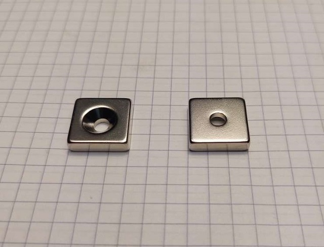 Magnes płytkowy pod wkręt MPŁW 15x15x5 [N38] stożek 8 mm do 4 mm biegun N lub S
