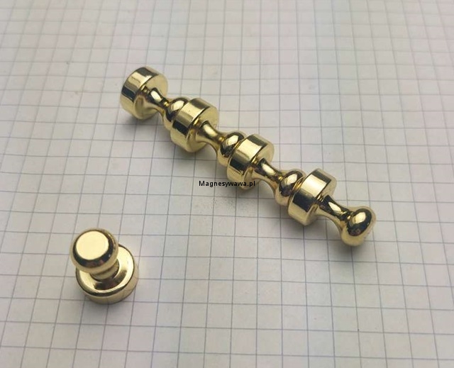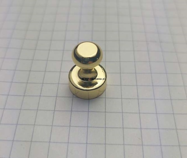 Mniejszy pionek magnetyczny stalowy w kolorze złotym do tablicy szklanej.