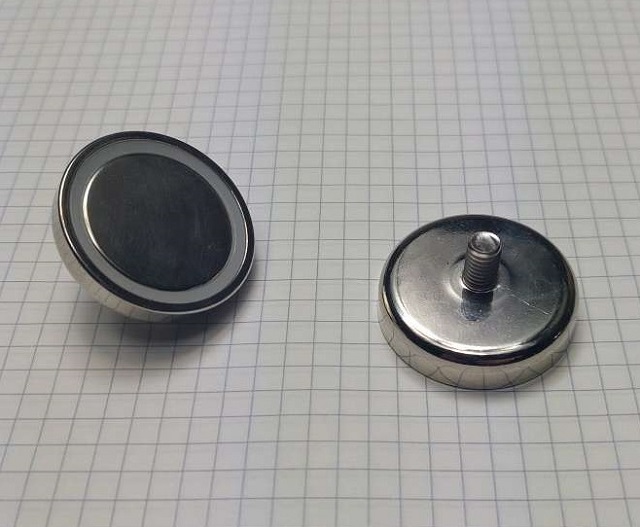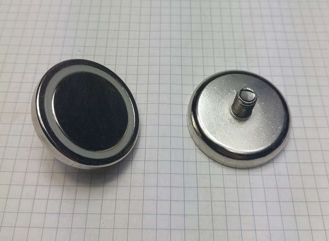 Uchwyty magnetyczne z magnesem neodymowym i gwintem zewnętrznym mamy dostępne w naszym sklepie w dwóch powłokach niklu i ocynku.